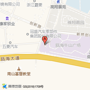 瓯海牛山广场占地面积约:49703㎡和温州市瓯海区新桥街道高翔路全球商品贸易港高翔路与瓯海大道交叉口东北方向71米相距 ⇄ 0m