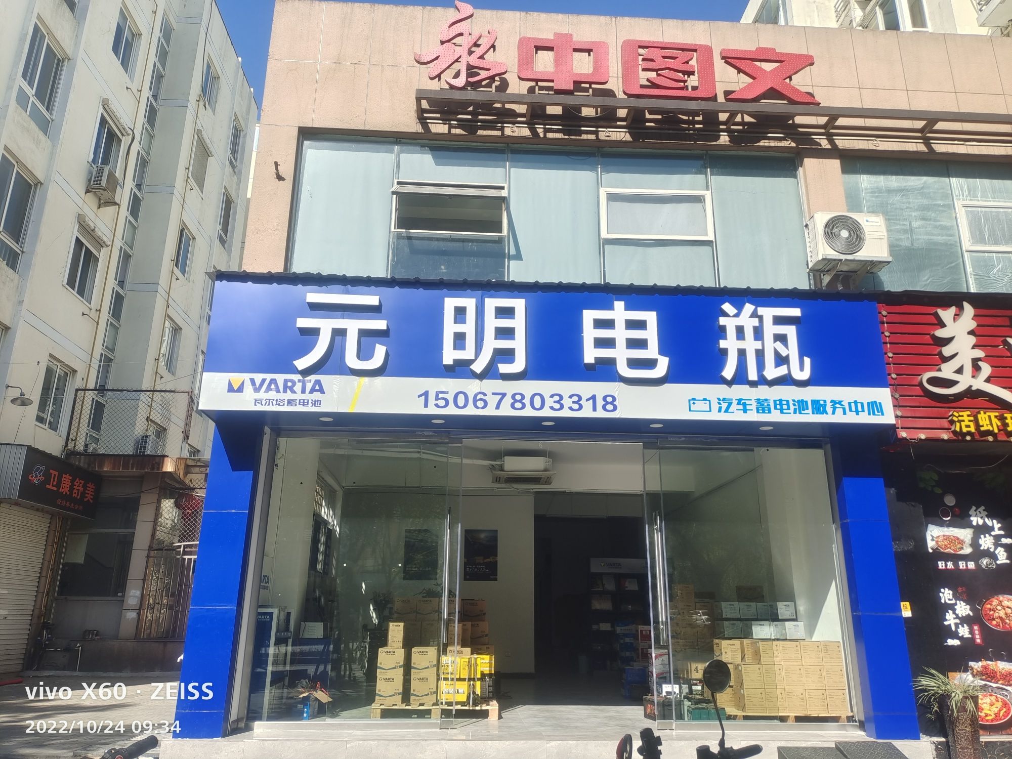 瓦尔塔蓄电池服务中心元明电瓶位于南翔锦苑10栋(永中地铁站2号口步行370米)(五度培训中心)培训机构北方向41.593米的位置。