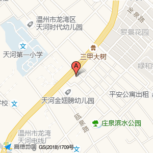 天河金翅膀幼儿园占地面积约:2257㎡和温州市龙湾区永丰东路与永强大道交叉口南20米相距 ⇄ 42.3955m