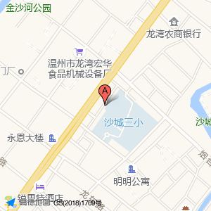 皇庭酒店占地面积约:667㎡和温州市龙湾区永强大道沙城镇第三小学相距 ⇄ 47.7861m