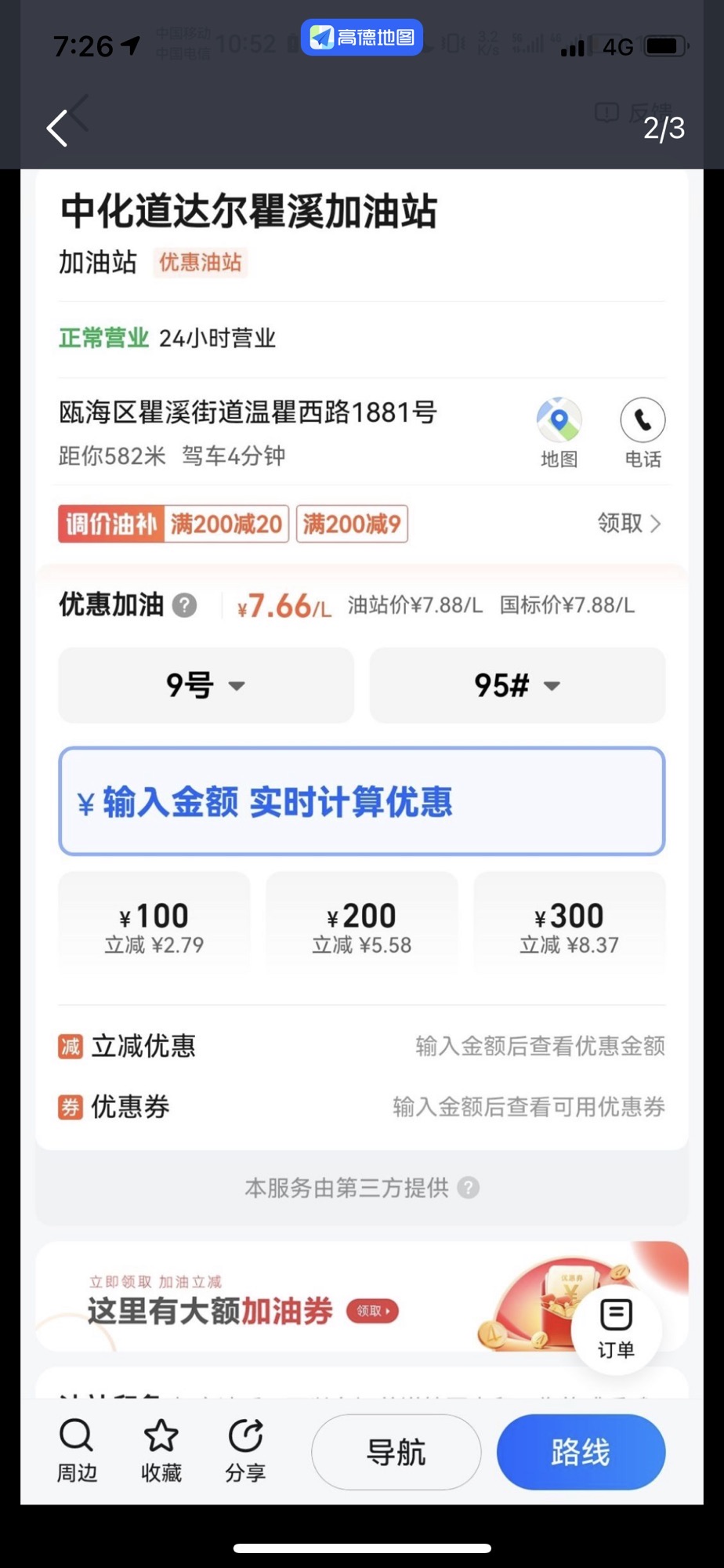 | 城市代码:330304 | 所属商圈:中化道达尔瞿溪加油站 |