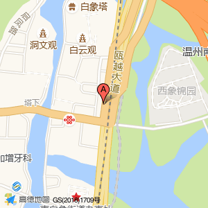 沿瓯越大道途径瓯越大道辅路向南行驶2.4千米靠左进入中间岔道