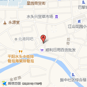 阿伟婚车位于水头镇中街179号(平阳水头中街排骨泡海棠排骨泡)餐饮相关西方向176.112米的位置。