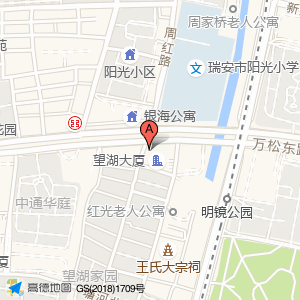 望湖大厦占地面积约:2635㎡和温州市瑞安市望湖大厦东门西北50米相距 ⇄ 0m