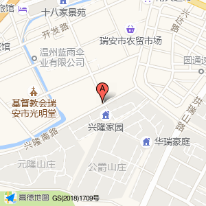 兴隆家园占地面积约:9513㎡和温州市瑞安市安阳街道十八家村兴隆南路A地块相距 ⇄ 11.3478m