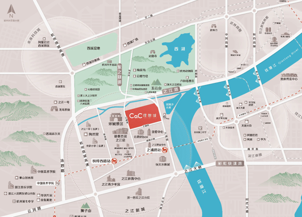 ➤沿拱瑞山路向东北步行237米右转