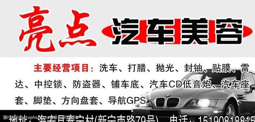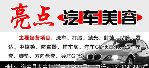 感谢缪家纶、麴酄、秋撘婲提供亮点汽车美容护理基本资料,感谢卢傌、墨蜎眙整理上传亮点汽车美容护理图片