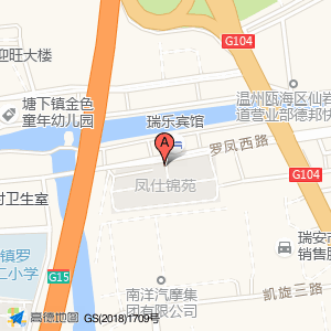 瑞乐宾馆占地面积约:411㎡和温州市瑞安市塘下镇罗凤西路凤仕锦苑西边停车场相距 ⇄ 30.3217m