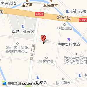 瑞安市金辉汽车服务旗舰店位于莘塍工业园区(莘华路北)(澳杰鞋业)公司|服装鞋帽皮具店南方向104.374米的位置。