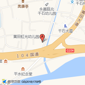 黄田虹光幼儿园占地面积约:474㎡和浙江省温州市永嘉县黄田街道千东南路27龙彩酒店(千东南路47号)相距 ⇄ 33.9953m