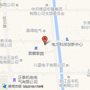 昌得电气占地面积约:10518㎡和浙江省温州市乐清市翁垟街道纬十一路浙江侨泰电力设备有限公司(纬十一路)(乐清经济开发区纬十一路255号)相距 ⇄ 38.6458m
