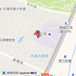 乐清大剧院占地面积约:23540㎡和浙江省温州市乐清市城东街道文海路蝴蝶广场(千帆东路555号)相距 ⇄ 44.5096m