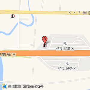 中国石化高速桥头下加油站位于G1513温丽高速与桥头服务区交叉口东南约160米(桥头服务区加水点)加水站南方向138.254米的位置。