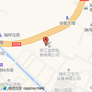 金鸥包装占地面积约:5093㎡和温州市瑞安市莘塍街道104国道华表路口与振兴西路交叉口华表经济合作社一楼2号相距 ⇄ 2.98074m
