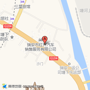 瑞安市红升汽车销售服务有限公司占地面积约:6466㎡和温州市瑞安市塘下镇上金工业区104国道边相距 ⇄ 14.0305m