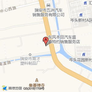 瑞安华欧汽车销售服务有限公司位于塘下镇岑头北路6号(东风本田汽车盛泰特约销售服务店)东风本田销售|东风本田维修北方向46.7711米的位置。