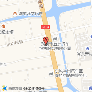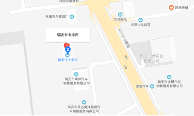 广汽丰田瑞安新盛塘下店位于塘下镇中心西路与104国道交叉口(瑞安市五洲汽车销售服务有限公司)雪佛兰销售|雪佛兰维修东北方向83.2712米的位置。