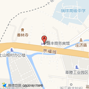 晟丰商务宾馆(瑞安客运中心人民医院店)占地面积约:1095㎡和温州市瑞安市京福线与瑞枫大道交叉口东340米相距 ⇄ 0m