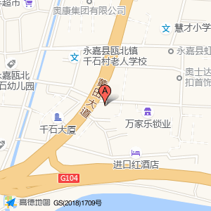 长安欧尚汽车位于瓯北镇千石村(永嘉县瓯北镇千石村老人学校)成人教育西北方向174.043米的位置。