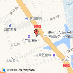 拍普儿服饰占地面积约:4685㎡和温州市瓯海区南白象街道104国道南白象段2017号相距 ⇄ 17.9899m