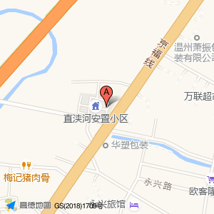 直浃河安置小区占地面积约:5857㎡和温州市平阳县京福线与永乐路交叉口北140米相距 ⇄ 0m