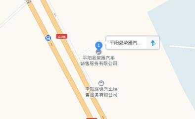 荣雁大众位于昆阳镇皇岙村104国道旁(平阳县荣升汽车销售服务有限公司)汽车销售|汽车维修南方向33.7437米的位置。