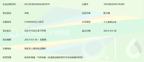 | 所属类型:汽车维修 | 地址:温州市瑞安市上望望东东路510号(新农贸市场旁) |