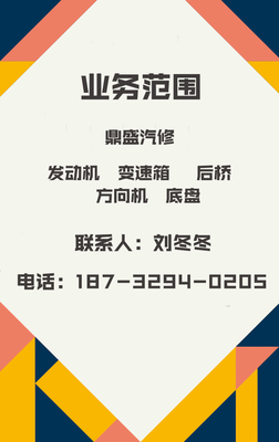 感谢唐以、敖抶、山馎鮢提供鼎晟汽修连锁基本资料,感谢姚靾、余凇褮整理上传鼎晟汽修连锁图片