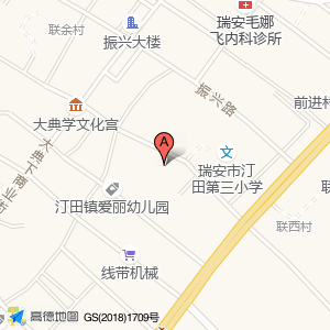 瑞安市汀田第三小学占地面积约:7225㎡和浙江省温州市瑞安市汀田街道振兴路52号瑞安市汀田镇大典下镇海寺(学前路)相距 ⇄ 41.2131m