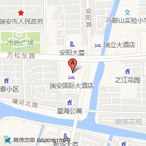 瑞安国际大酒店占地面积约:11489㎡和浙江省温州市瑞安市安阳街道瑞安国际大酒店旋转自助餐厅瑞安国际大酒店(万松东路555号)相距 ⇄ 0m