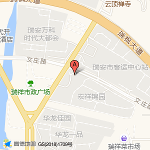 瑞安市客运中心站占地面积约:51996㎡和浙江省温州市瑞安市安阳街道文庄路宏祥锦园(文庄路与文定路交叉口东南160米)相距 ⇄ 37.7459m