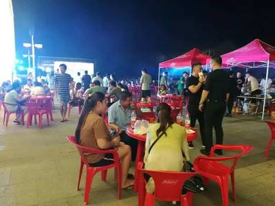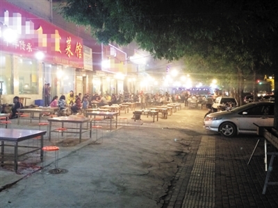 烧烤排档位于昆鳌大道与平鳌路交叉口南480米(平阳县人民医院停车场)公共停车场西北方向302.407米的位置。