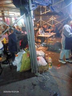 烧烤排档位于昆阳镇城南牧垟村(法印寺)寺庙道观东北方向257.263米的位置。