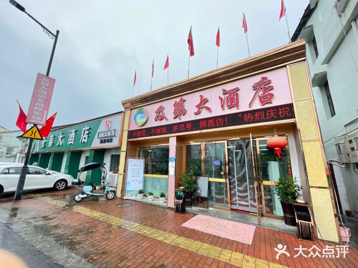 及第大酒店位于曹村镇工业区(温州顺发渔网制造有限公司)公司企业东方向259.433米的位置。