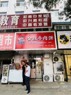 金丝牛肉饼位于健康路与建设路交叉口东40米(古法理疗馆)医疗保健服务场所东方向125.13米的位置。