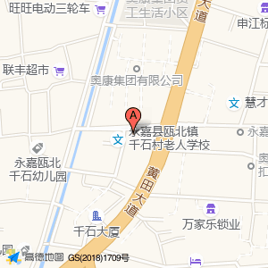 永嘉县瓯北镇千石村老人学校占地面积约:432㎡和浙江省温州市永嘉县黄田街道茶百道(千石店)弘源宾馆(千石大街2号(江南医院对面))相距 ⇄ 27.141m