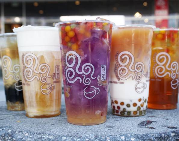 贡茶位于黄田东街与黄田大道交叉口东300米(阿青数控车床)家居建材市场东方向196.279米的位置。