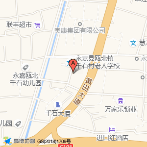 永嘉县瓯北镇千石村老人学校占地面积约:432㎡和浙江省温州市永嘉县黄田街道小个川菜馆永嘉县瓯北镇千石村老人学校(瓯北镇千石村)相距 ⇄ 38.3461m