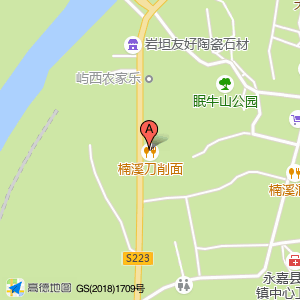 楠溪刀削面概况介绍,地址位于永嘉县岩坦镇223省道旁边,也就是在浙江省温州市永嘉县岩坦镇楠溪刀削面楠溪江风景名胜区(岩坦镇岩坦街)附近。