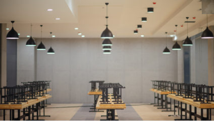 ➤沿工业中心路向南步行628米左转