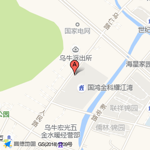 中国邮政(乌牛邮政支局)占地面积约:1286㎡和浙江省温州市永嘉县乌牛街道人民路国鸿金科耀江湾(建设中)(乌仁路488号)相距 ⇄ 34.7833m