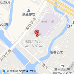 南虹广场公园一号小区占地面积约:14591㎡和浙江省温州市乐清市城南街道华莱士(乐清南虹广场店)南虹广场公园一号小区(城南街道玉箫路111号)相距 ⇄ 0m