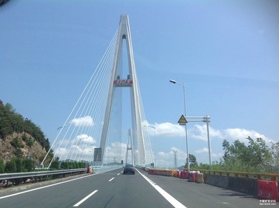 沿七都大桥途径104国道向东北行驶2.0千米靠右