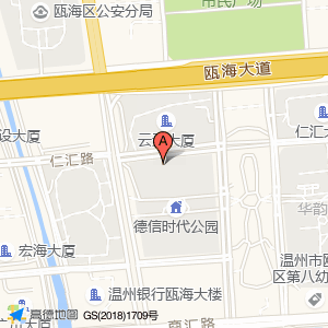 温州云天楼瓯越大酒店占地面积约:6929㎡和温州市瓯海区德信时代公园相距 ⇄ 34.4575m