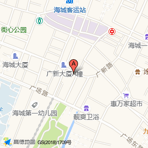 疯狂小串(海城店)位于广新路与广新东路交叉口西南180米(广海大厦)商住两用楼宇西南方向87.0028米的位置。