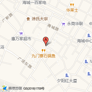 阿三面馆(海城店)位于海城街道广场东路99号二楼(佳禾家具)家具城西方向189.522米的位置。