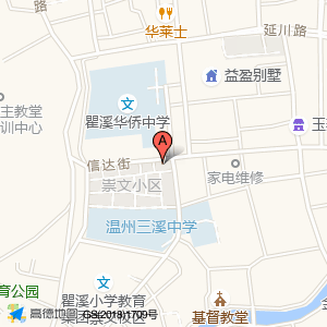 瞿溪华侨中学占地面积约:17436㎡和温州市瓯海区祟文小区东北门旁相距 ⇄ 35.0968m