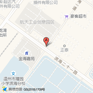 航天工业创意园区占地面积约:34938㎡和温州市龙湾区金海一道402号相距 ⇄ 38.3183m