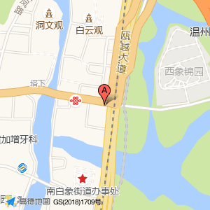 沿瓯越大道途径瓯越大道辅路向南行驶2.4千米靠左进入中间岔道