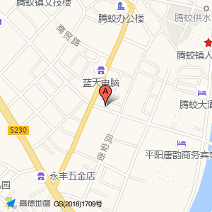 和当来骨头饭(腾胶店)位于平阳县(腾蛟村)村庄级地名东北方向54.8511米的位置。